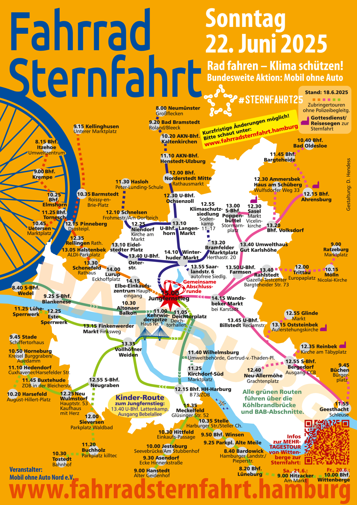 Am 22. Juni 2025 demonstrieren tausende aus Hamburg, Niedersachsen und Schleswig-Holstein für das Fahrrad als umweltfreundliches Verkehrsmittel und den konsequenten Ausbau der Radinfrastruktur innerstädtisch und im Bereich der Metropolregion Hamburg.